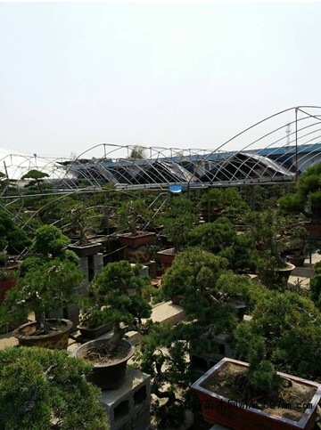 罗汉松盆栽花卉的商户掀掉了遮阳网 接受光照